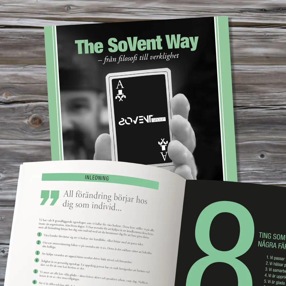 Vi vill ge dig som medarbetare en lärorik grund redan från dag 1. Med vår värdegrundsbok "The SoVent Way" får du värdefulla nycklar till hur vi jobbar utifrån vårt fokus på kvalitet och kunskap – och hur vi ser på kundvård, gruppdynamik och trivsel på jobbet. Boken är också en inspirerande guideline för din egen personliga utveckling.